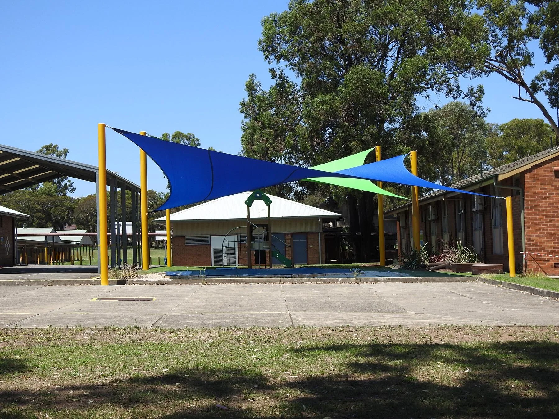 They are best suited for smaller spaces such as play areas or sandpits, covering seating, amphitheatres, yarning circles and quiet spaces. Our fabric tensioning system ensures water runoff to minimise stretching and sagging.